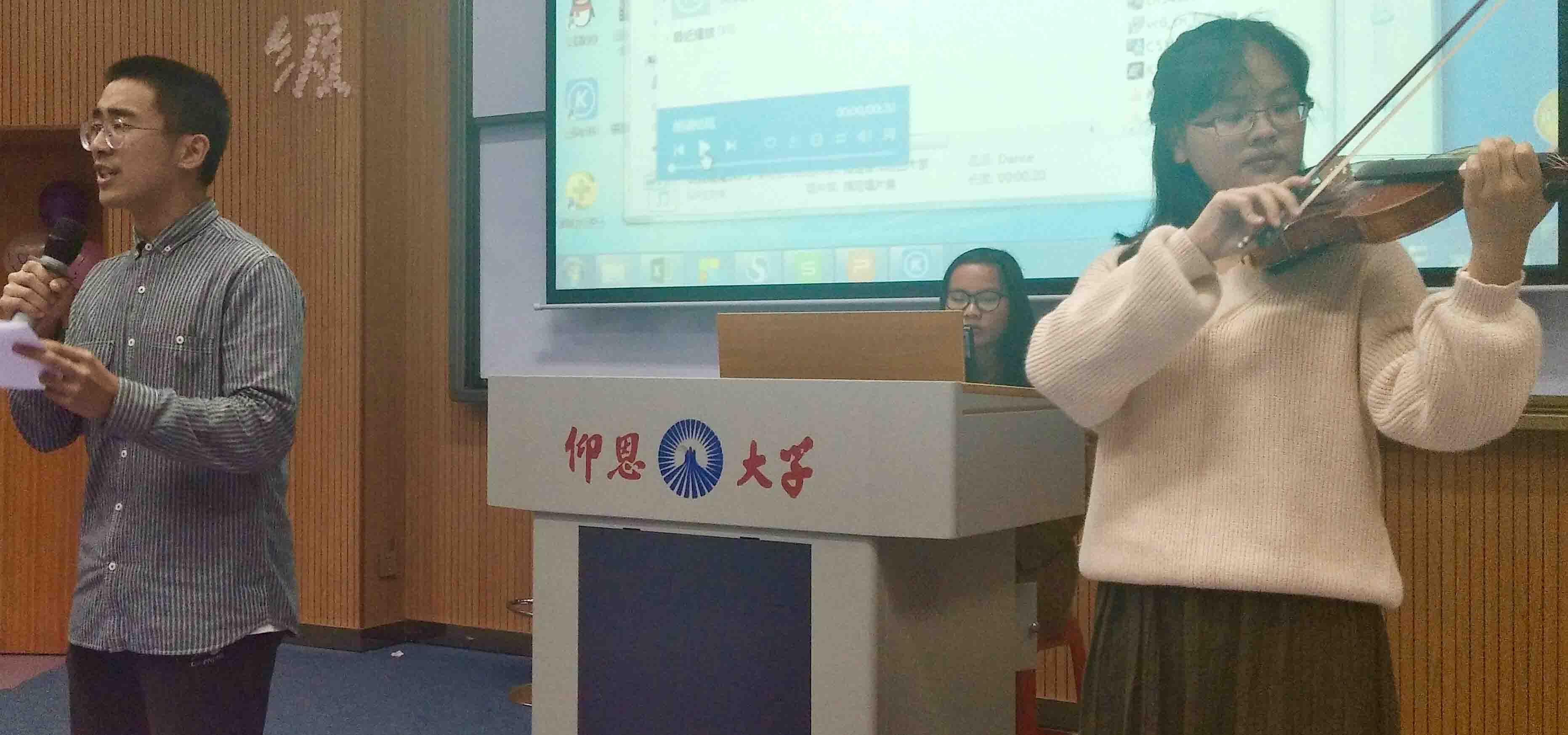 16新闻1班的黄志敏从班级学风、班级成员、班级活动成果、班级精神风貌、班级优秀个人5个方面展开演讲,大方、自信的主持风格获得评委一致肯定,她向大家展示了班集体累累硕果。过程中,两位班级优秀同学还穿插了一段表演,自弹自唱《读中国》,掌声经久不息。