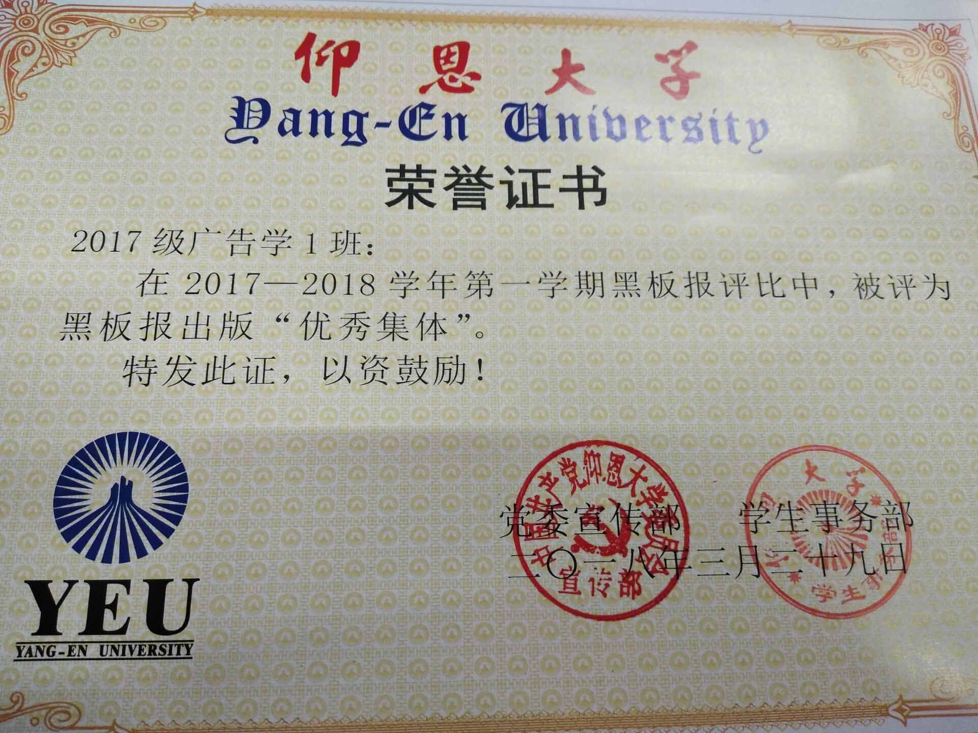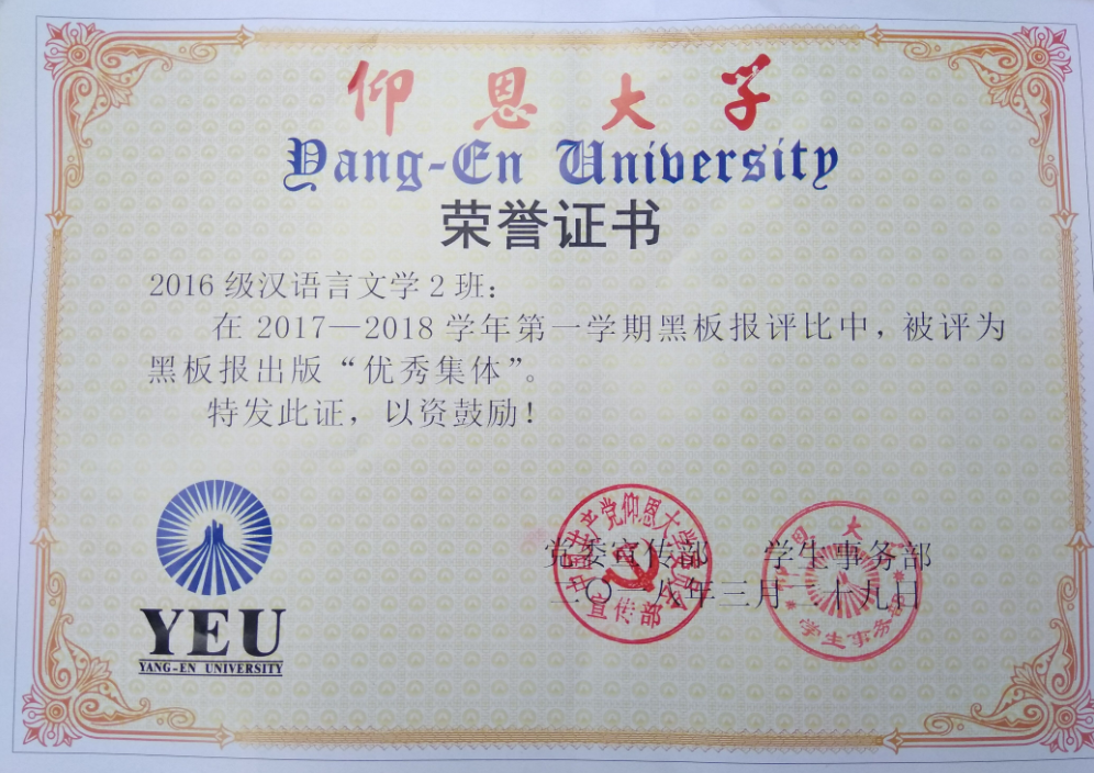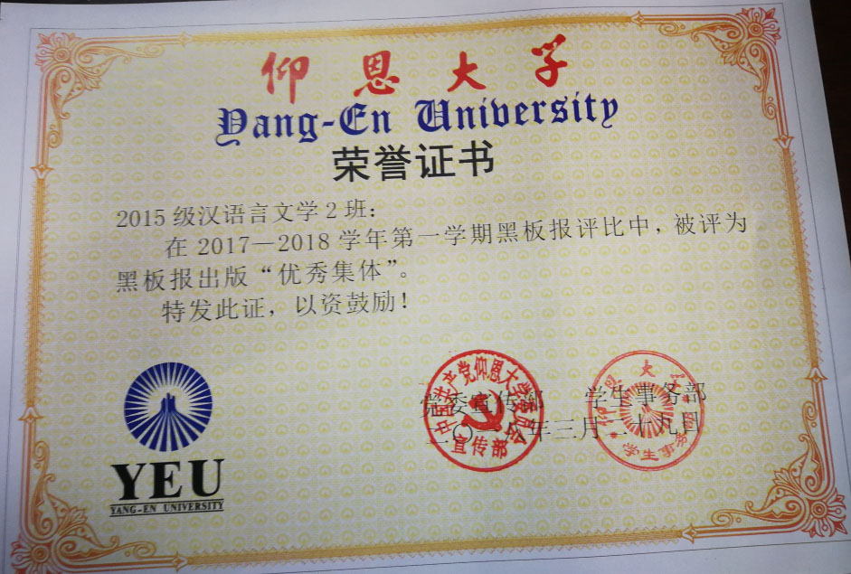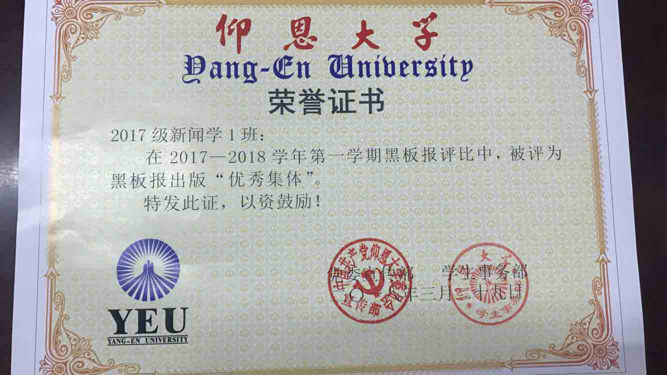 在2017—2018学年第一期黑板报评比中,LETOU国际米兰官网有5个班级被评为黑板报出版“优秀集体”,他们分别是15新闻学1班、15汉语言文学2班、16汉语言文学1班、16汉语言文学2班、17新闻学1班、17新闻学2班、17广告学1班。
