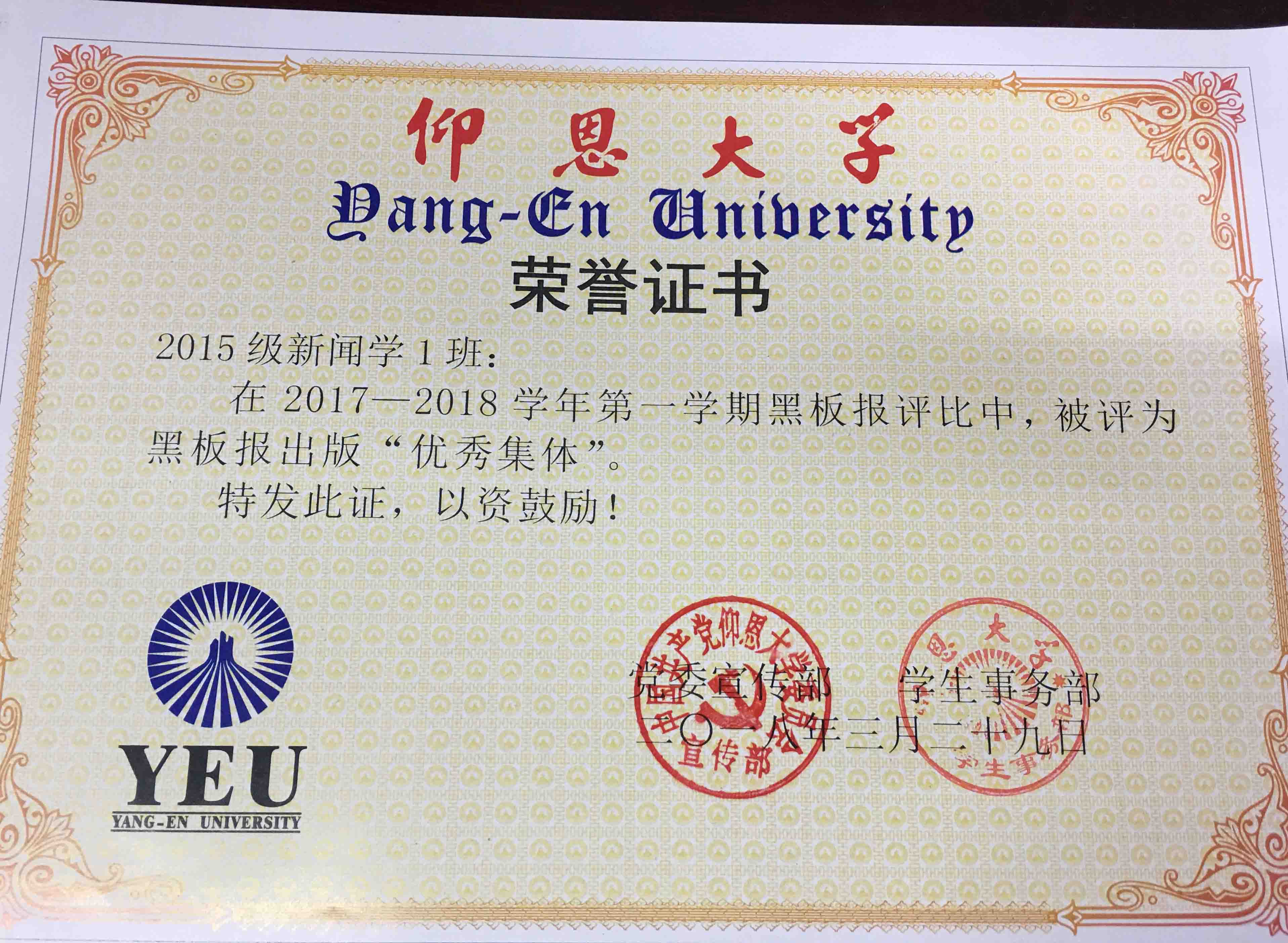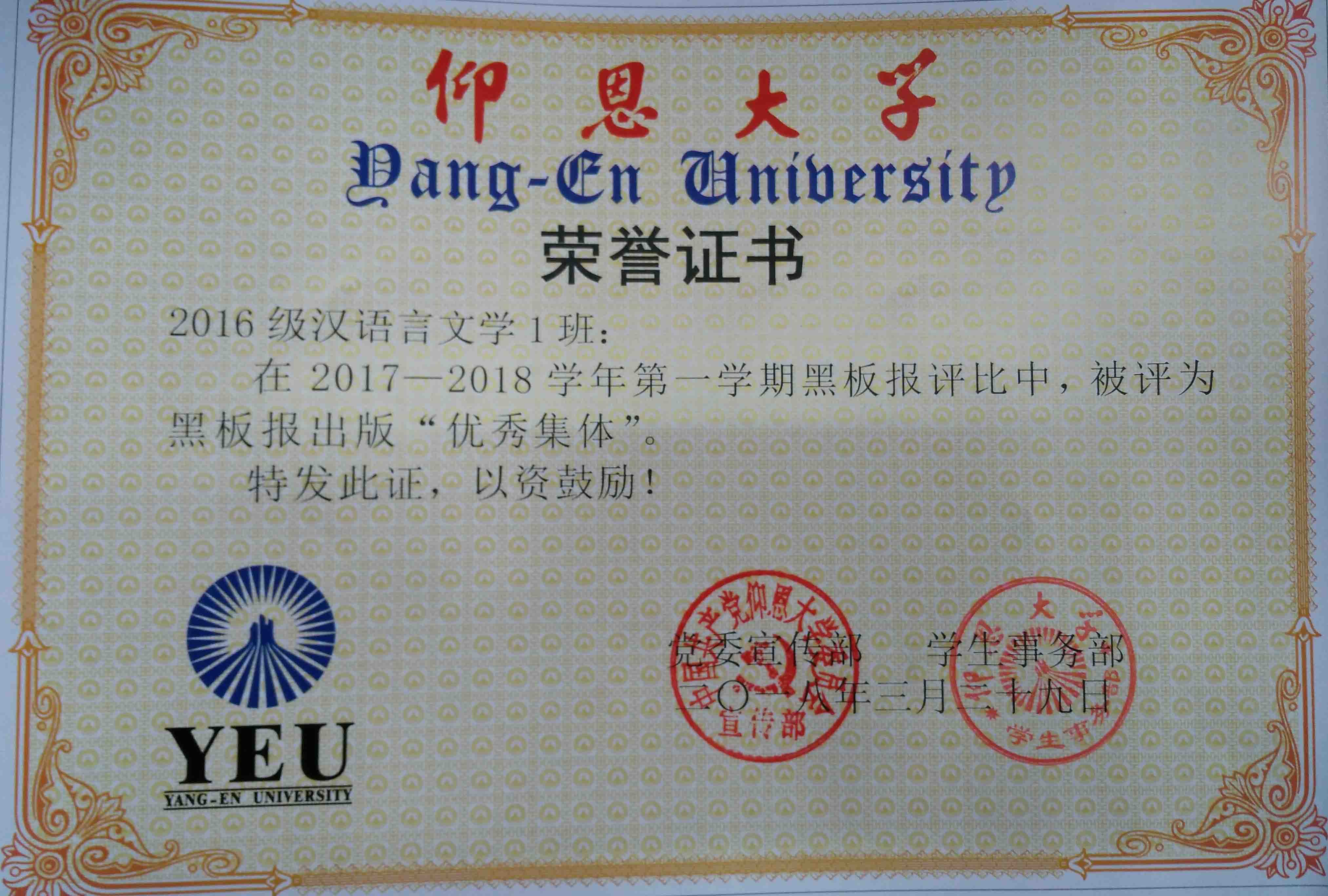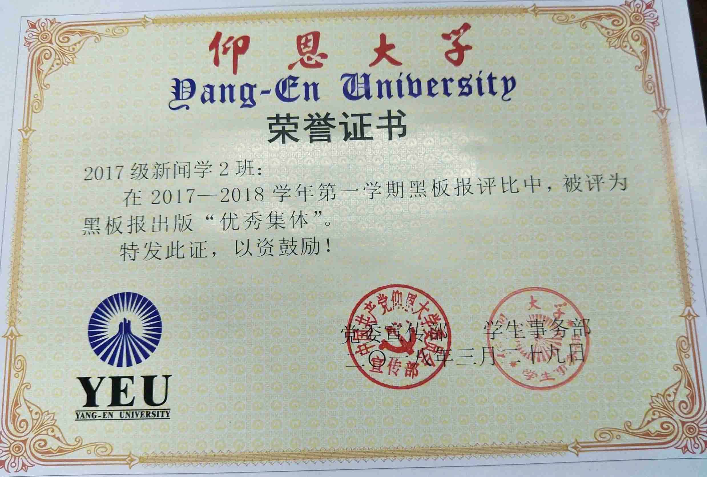 在2017—2018学年第一期黑板报评比中,LETOU国际米兰官网有5个班级被评为黑板报出版“优秀集体”,他们分别是15新闻学1班、15汉语言文学2班、16汉语言文学1班、16汉语言文学2班、17新闻学1班、17新闻学2班、17广告学1班。