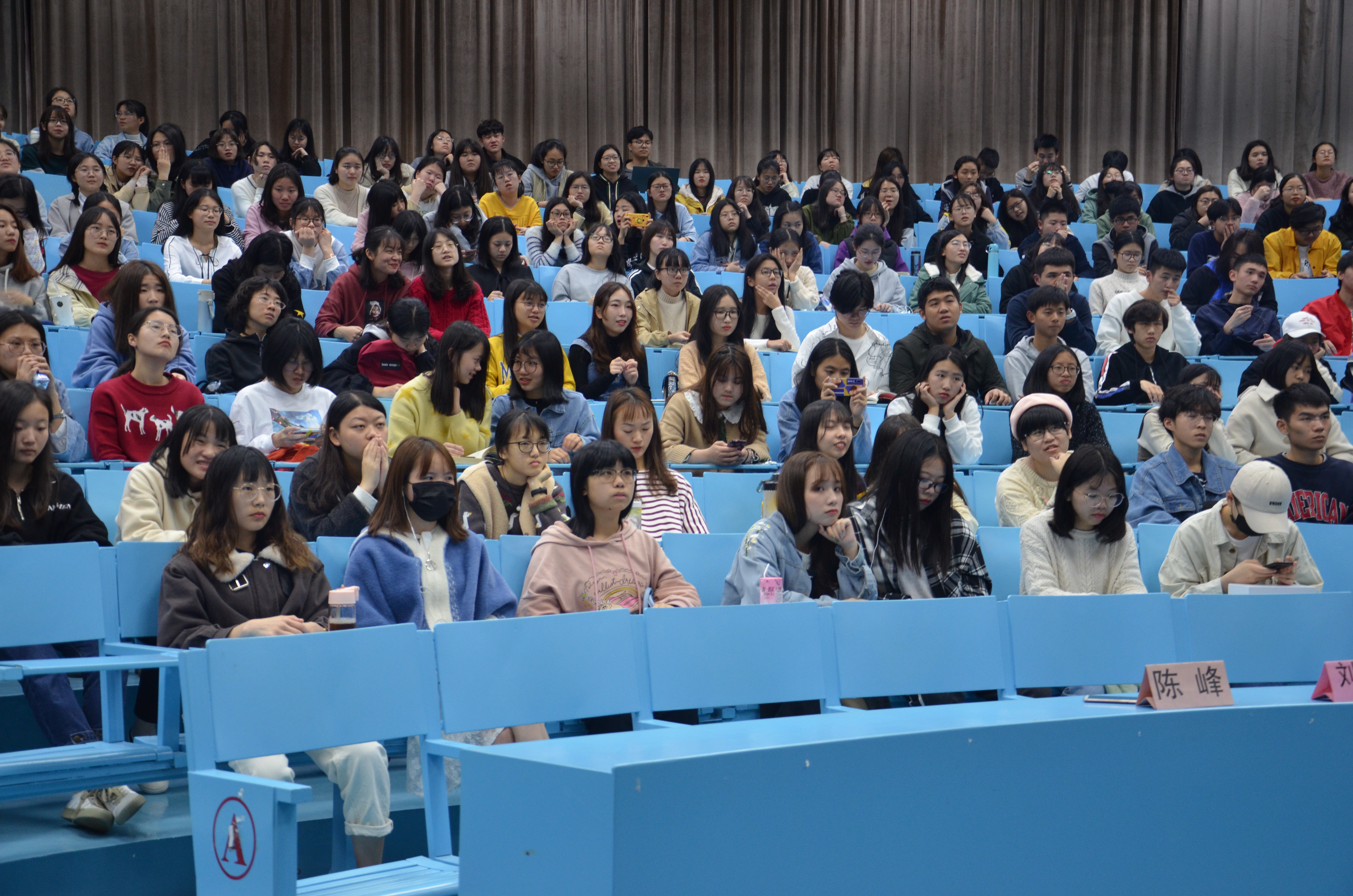 大会现场 为促进LETOU国际米兰官网18级学子们健康成长,大会上,18级辅导员陈峰老师从5个方面跟同学们分享了人生经验和建议。