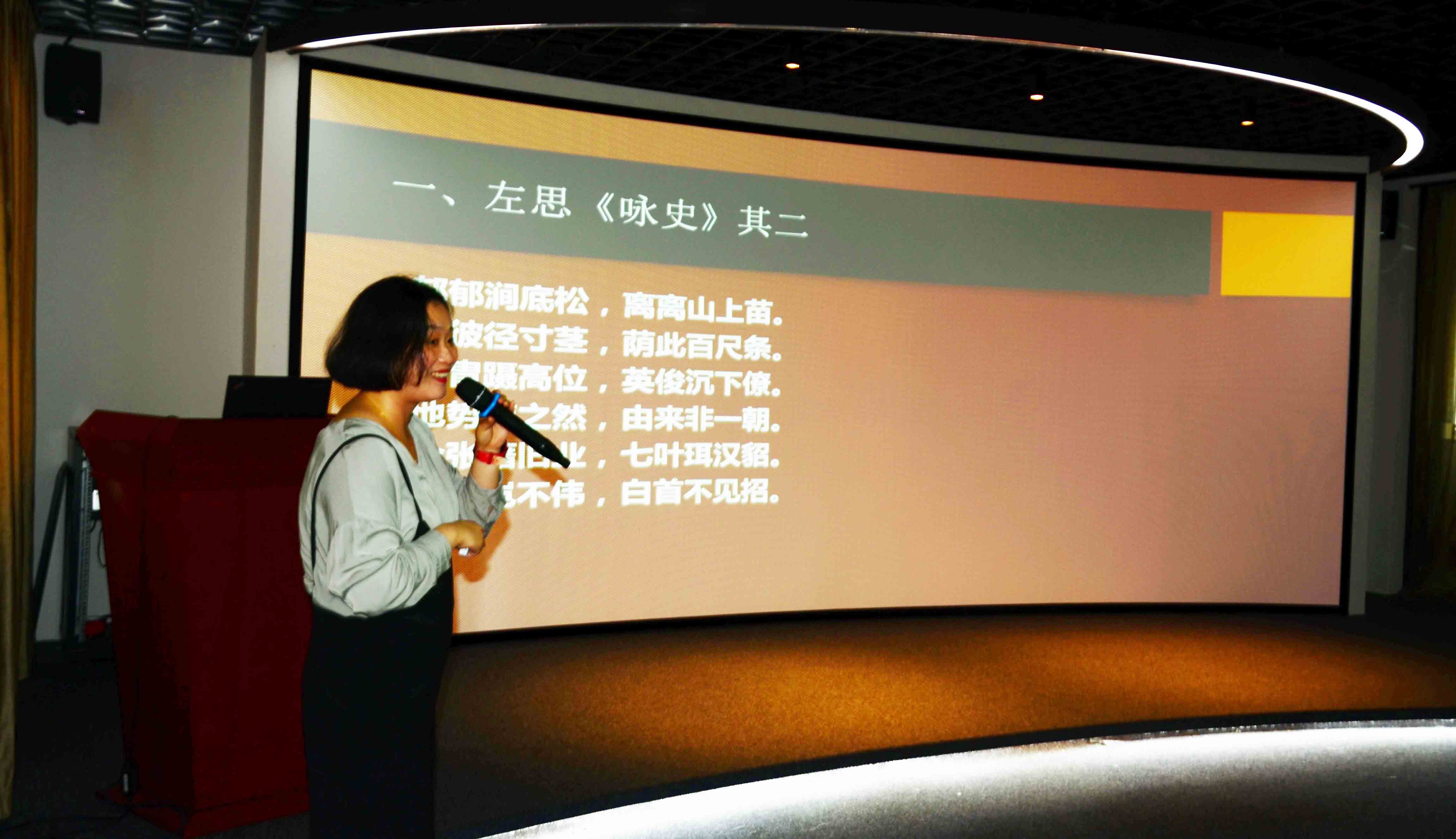 比赛现场 比赛在何丹丹老师的莎士比亚的十四行诗解读中拉开序幕,他带领着我们走进美丽的诗歌国度中。紧接着,张婧雅老师通过大家耳熟能详的咏史诗导入,结合文献分析了左思“创成一体,垂式千秋”的咏史诗。程燕婷老师则是以“孤独”这个永恒的主题开篇,从表层意思和深层意义两个方面鉴赏马尔克斯的《百年孤独》。岳秀文老师通过六种音变类别和音变的规则给大家讲解“啊”的音变。李清霞老师则围绕“何为文化”让我们了解中国文化概论这门课程。最后,林珍华老师通过文体解析和故事材质两个方面讲解故事写作的要领。