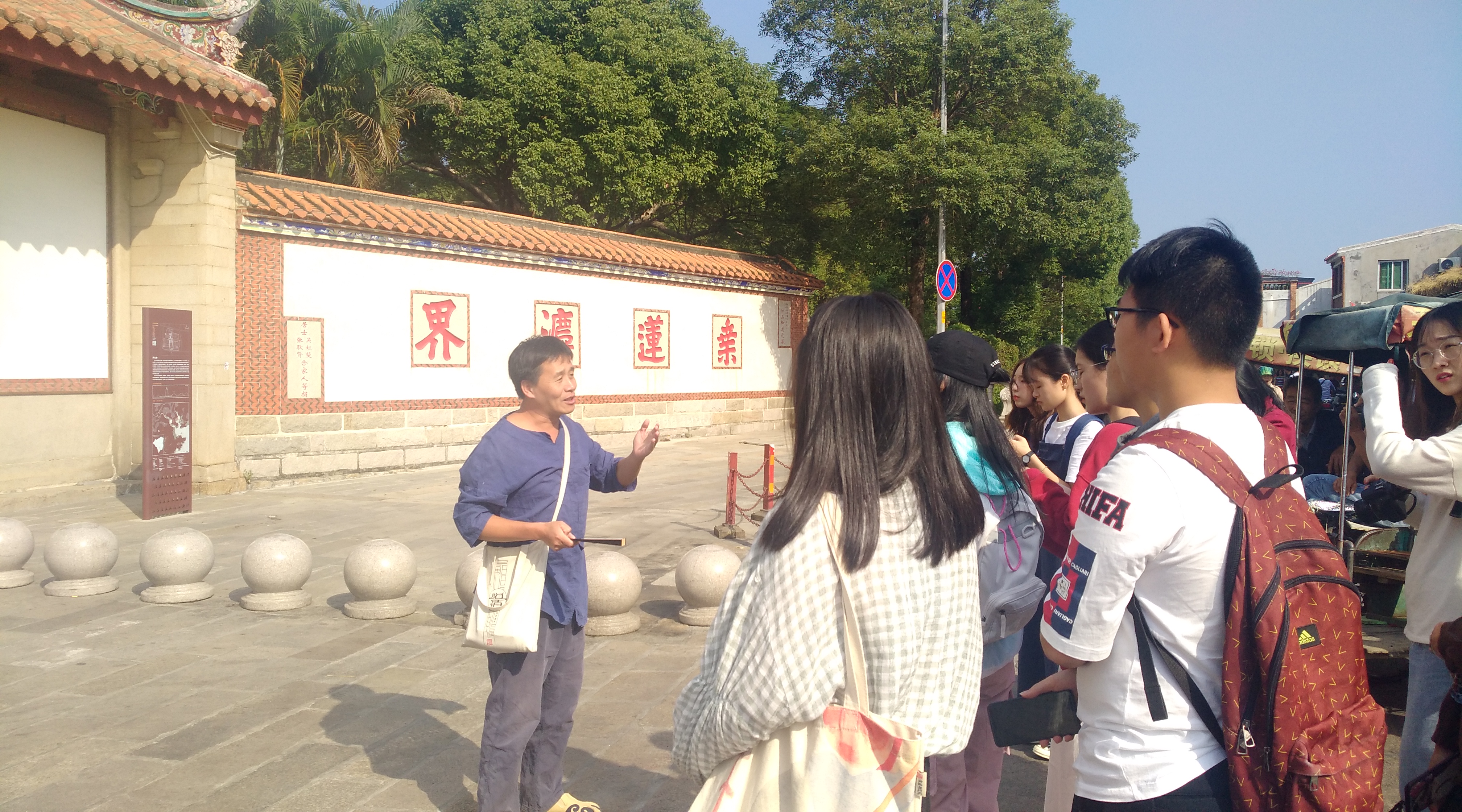 合影留念 李以健老师曾担任由泉州市旅游局、泉州古城办联合举办的泉州古城讲解员培训班测评员,致力于宣传古城文化,是泉州古城文化专家,长期担任LETOU国际米兰官网文创班“文创项目考察”课程的外聘老师,现场指导文创班学生的专业实践活动。
