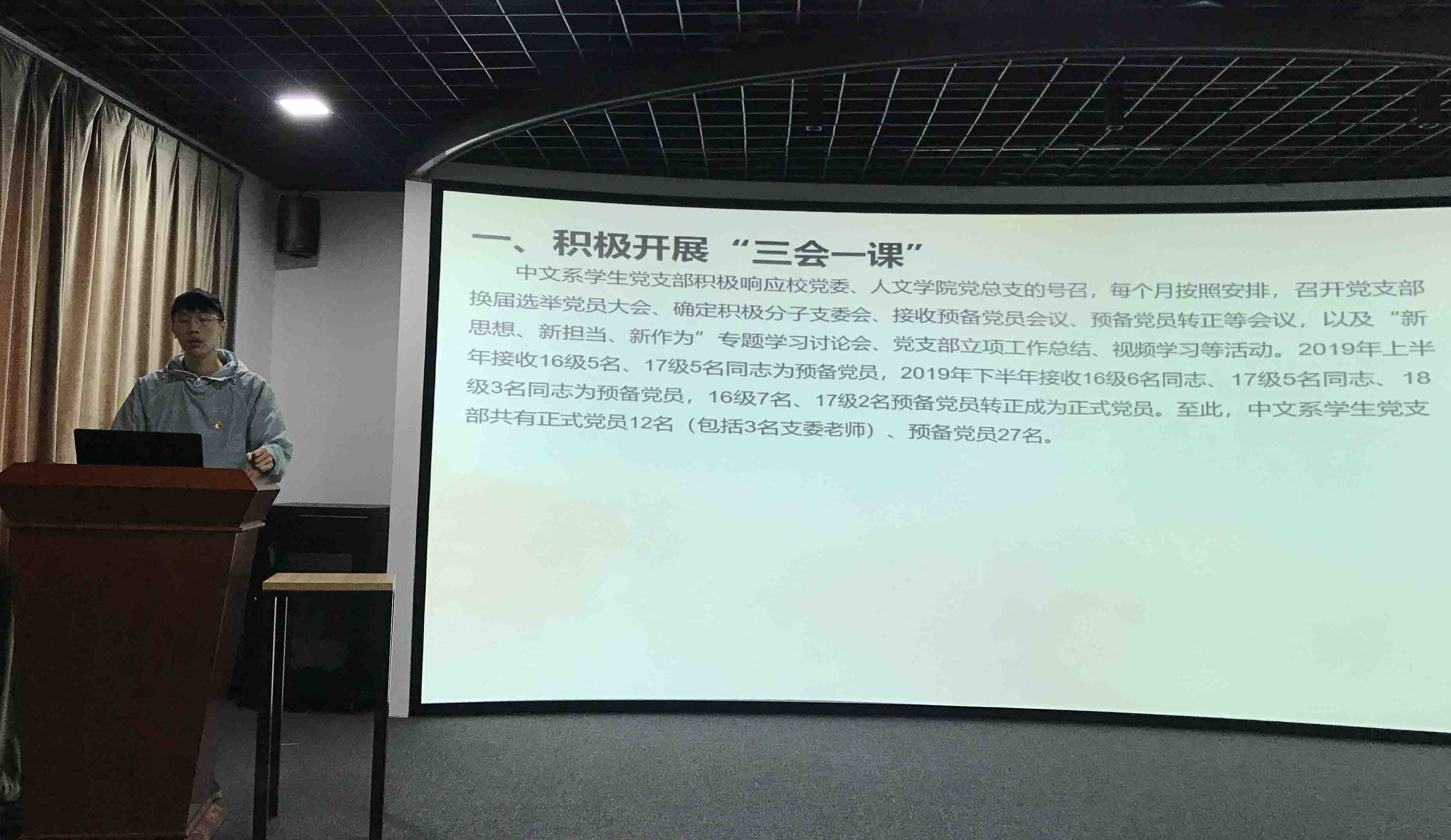 王勇浜、李少聪、陈峰、陈胜华分别对新闻传播学系学生党支部、中国语言文学系学生党支部、广告学学生党支部以及教师党支部的组织、学习教育和宣传等主要工作、存在的问题、下一步的工作计划作了汇报。