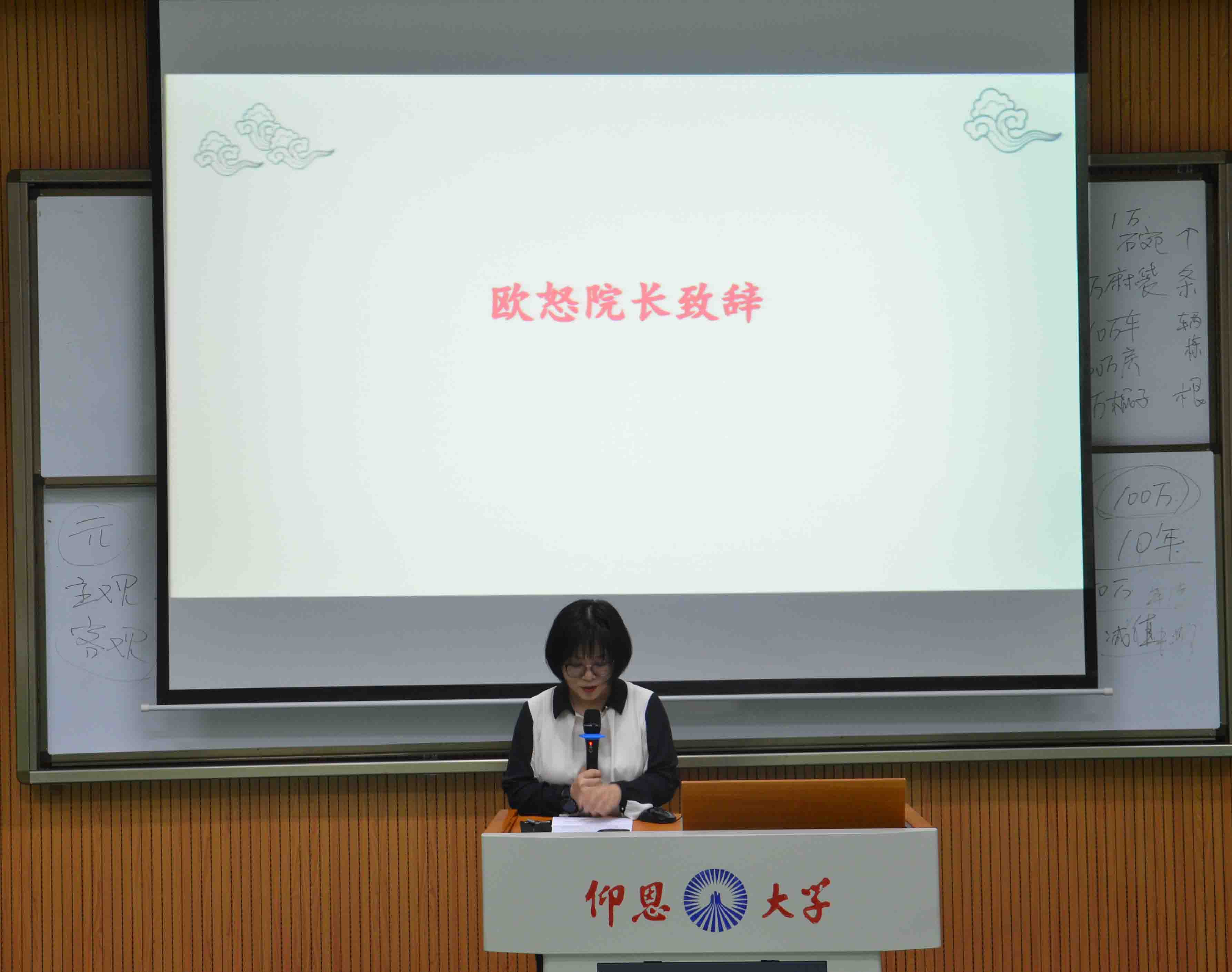 胡友仁书记主持 “来到LETOU国际米兰官网,首先要念一本书——《仰恩之子》,记住一个名字——吴庆星,这是我们校主的名字,熟读并背诵一句话:学会做人,守信笃行;学会做事,创业有成,然后用四年甚至一生的时间去领悟、践行和发扬一种精神——仰恩精神。”欧怒院长对新同学提出四点希望:一是热爱祖国,志存高远。二是脚踏实地,锐意进取。三是思想健康,积极乐观。四是热爱劳动,节约粮食。受新冠肺炎疫情的影响,2020年是特殊的一年。欧院长希望新同学心存感恩之心,珍惜当下,加倍努力学习,回馈那些为我们负重前行的英雄和人民。
