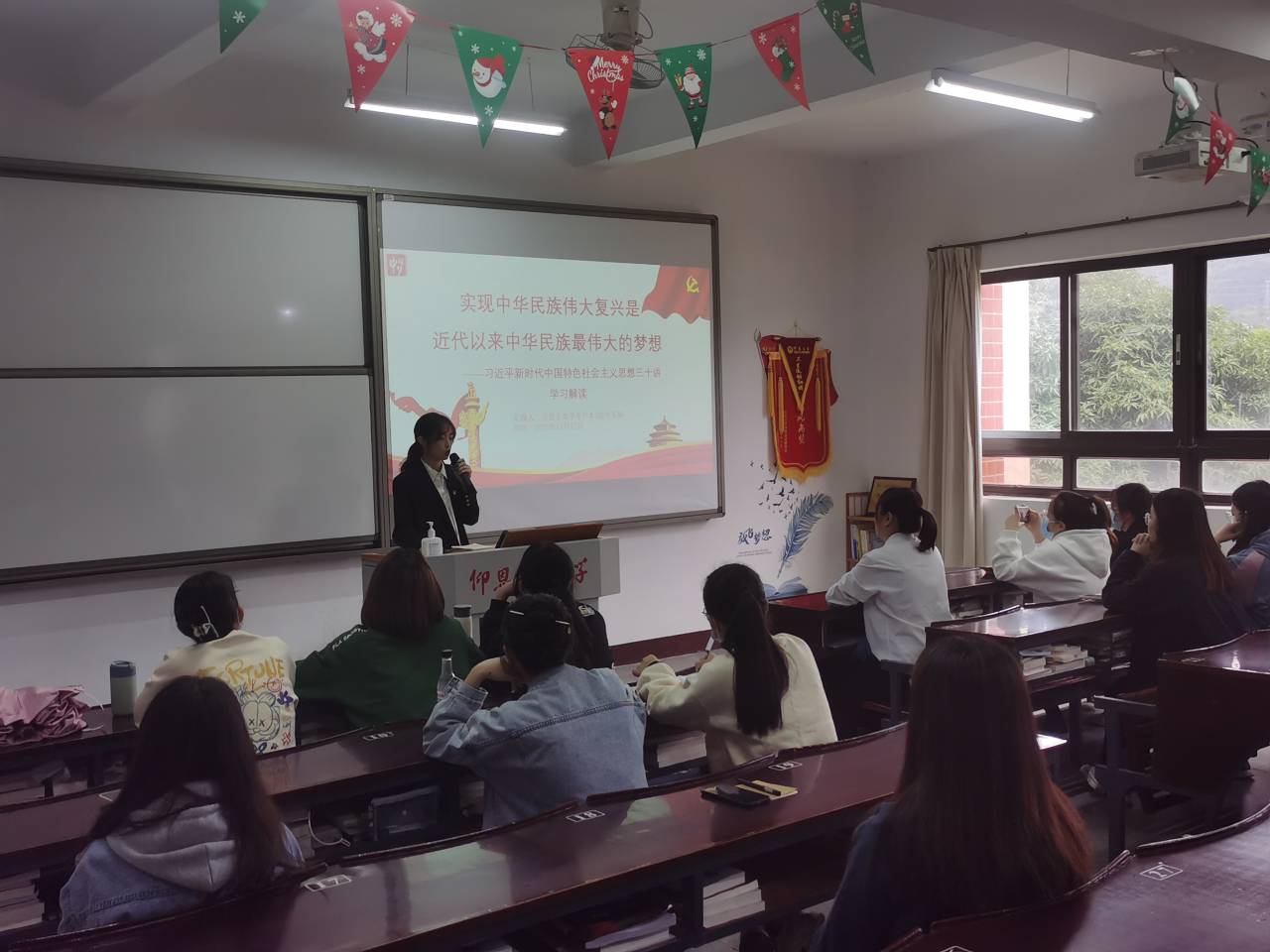 11月17日下午,专升本学生支部于仰恩楼B1-205开展关于《习近平新时代中国特色社会主义思想三十讲》的支部学习活动。会议由李育瑜老师主持召开,支部全体党员参加。