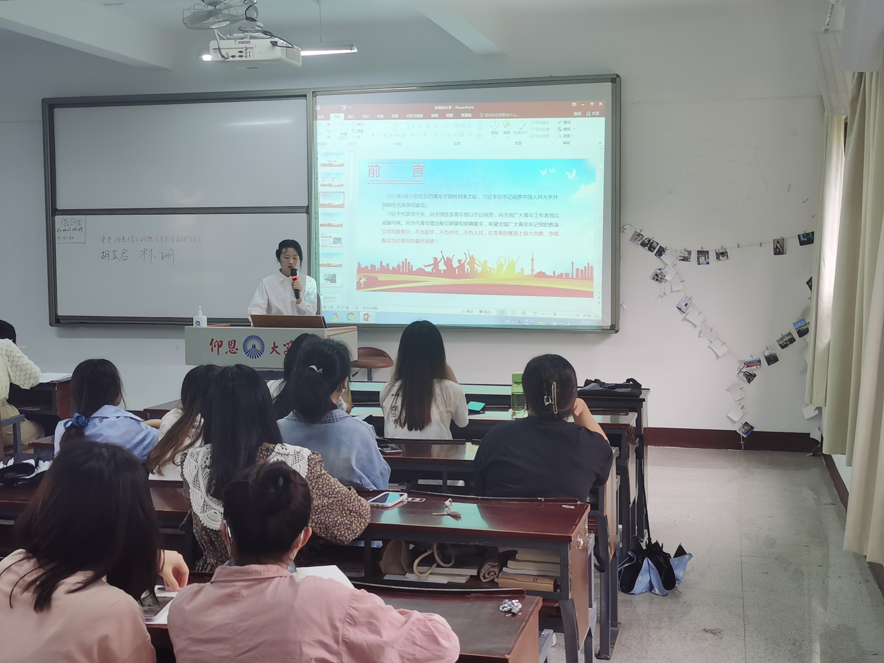 习近平总书记到中国人民大学视察,向全国各族青年致以节日祝贺,向全国广大青年工作者致以诚挚问候,体现了习近平总书记对青年一代始终不移的关爱。支部的党员自行学习习近平总书记在中国人民大学考察时的重要讲话精神。李嘉昱、林小红、陈美妮三位同志在此次的活动中结合自身的情况进行了分享,并下定决心要向习近平总书记讲话中说的那样努力,立志民族复兴,不负韶华,不负时代,不负人民,在青春的赛道上奋力奔跑,争取跑出当代青年的最好成绩!