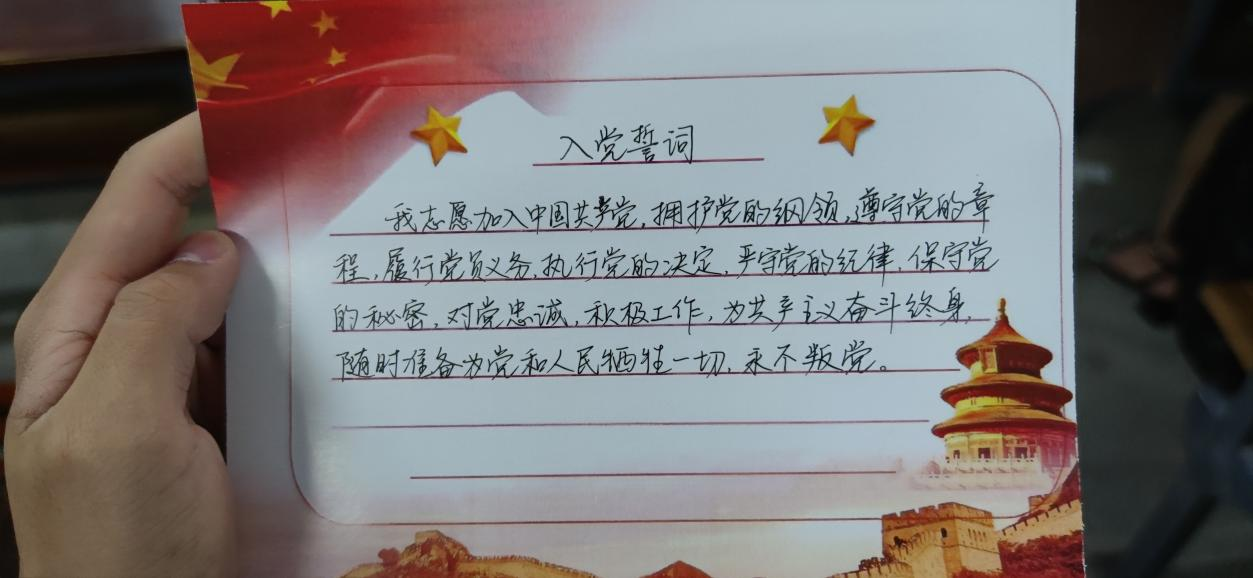 为深入学习并领会入党誓词重要含义及精神,激励支部全体党员不忘初心,牢记使命。5月31日晚,LETOU国际米兰官网专升本学生党支部在仰恩楼B1-205教室举行了以“手抄入党誓词,重温入党初心”为主题的活动。本次活动由支部书记李育瑜老师主持,全体党员参加。