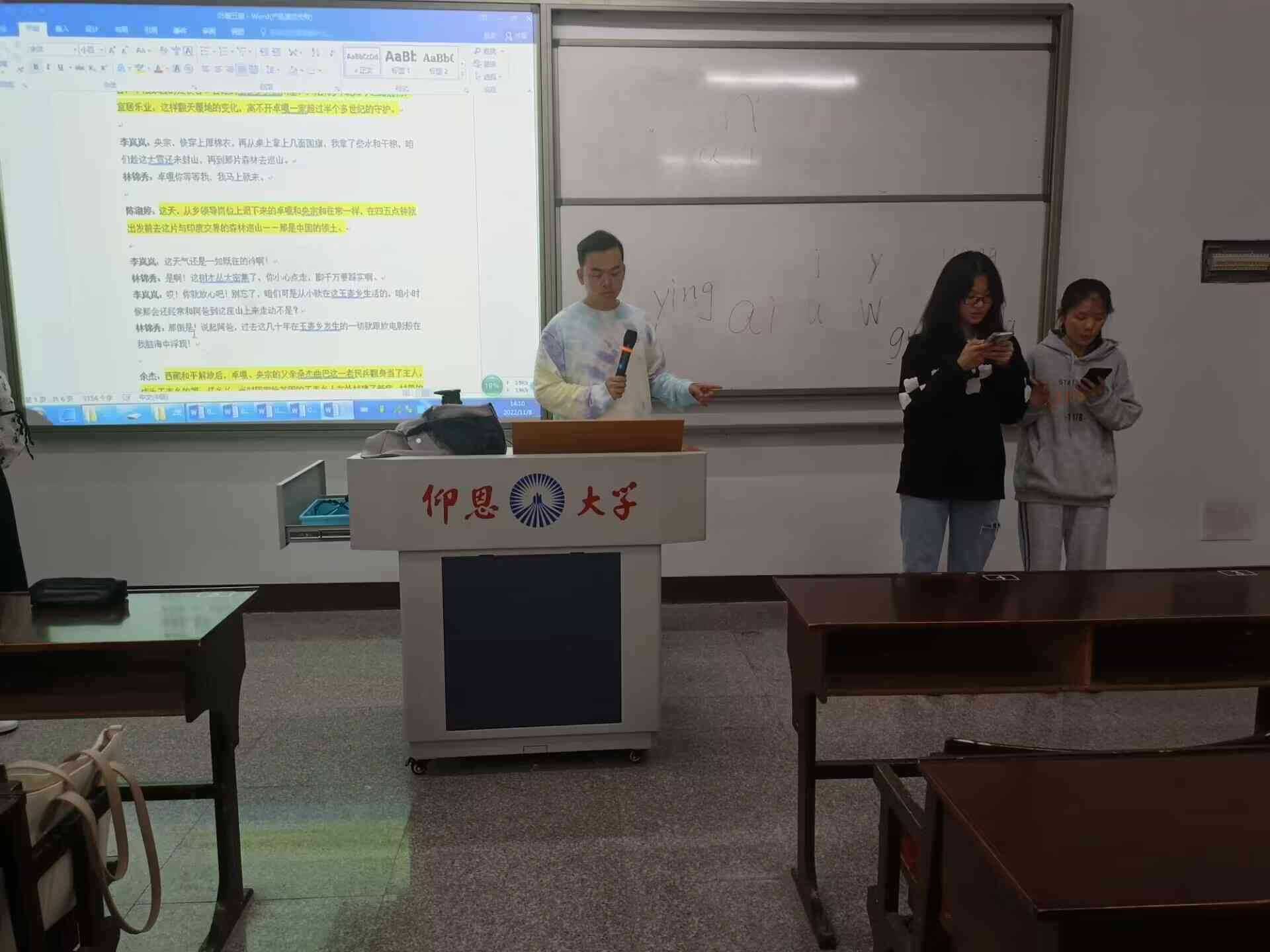 在同学们上台演绎自己的普通话朗诵剧本期间,陈俊晔老师用幽默风趣的语言来不断调动同学们的情绪,同时帮助同学们调整角色分配存在的问题,并对同学们的表现进行逐一点评,指出需要注意和改善的语音、语调等地方。在外聘教师陈俊晔的耐心指导下,同学们纷纷表示自己受益匪浅,更加领悟到了语言的魅力。