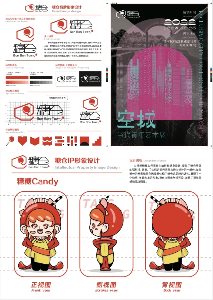 比赛作品 本次比赛采用选手个人独立应用计算机进行广告设计,要求选手在规定的时间内,根据提供的赛题和素材,完成给定项目竞赛模块包括: 品牌形象设计、IP形象设计、包装设计、海报设计四个工作任务,涵盖图形、色彩、字体、版式、印刷五方面内容。比赛以广告设计师国家职业标准为基础指导,参考《广告设计师国家职业标准》GZB135-2003(国家职业资格三级),紧跟社会经济发展和广告设计行业需求,贴近生产实际、体现工作过程。