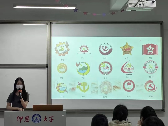 在最后一支队伍的分享结束后,二支书记谢云组织大家进行了投票,票选出了排名前五的作品后,支部书记们又对这五个作品进行了讨论复选,最终决定采用“儿行千里母担忧队”设计的Logo作为中国语言文学系学生第一、第二党支部的形象标识。(图/郑秀洁、贺蜜文/方垚)