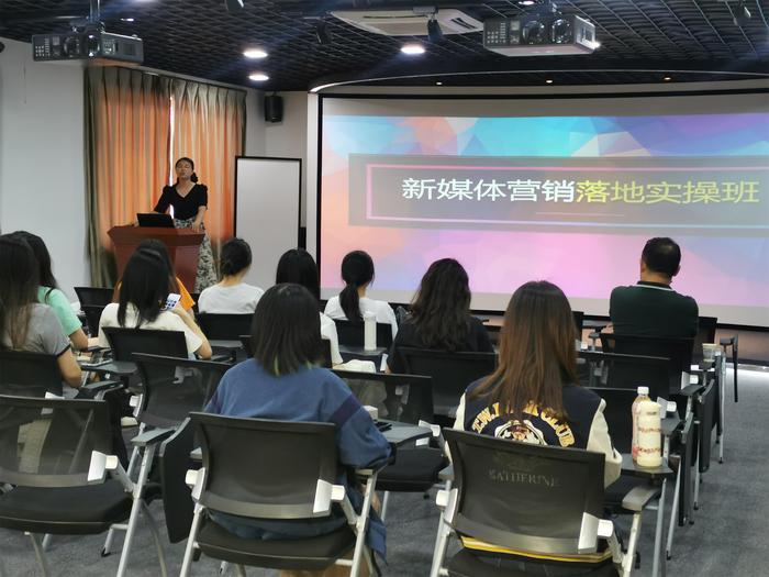 同时,为了让学生对广告行业的媒体环境、营销现状有更深入全面的了解,广告学系还邀请了惠安县云想众创空间有限公司总经理蔡喃喃到校为学生开展关于“新媒体营销落地实操”的专题讲座,蔡喃喃不仅与同学们交流当前短视频制作与电商直播的现状,同时就新媒体实际操作技巧等提出了针对性的建议。