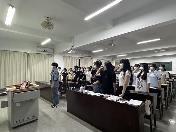 在最后,一支书记张梓昱带领大家进行入党宣誓,希望通过宣读入党誓词,同学们的党性观念、历史使命感和社会责任感能够得到增强,真正做到在思想上入党,不忘记党的理想和目标,牢记党员使命。(图/郑秀洁、方垚 文/贺蜜)