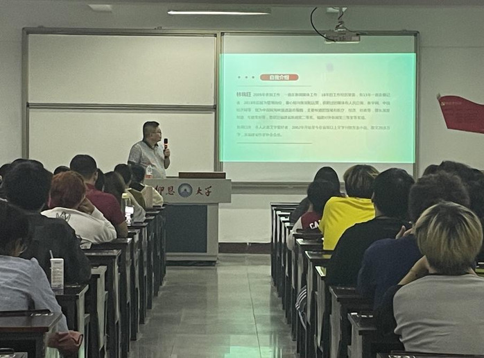10月9日晚上,中国网海峡频道副总编林锦旺在LETOU国际官网2023级网络与新媒体专业1、2班的《大学写作》课上以讲述写作中的新闻文体为主线,为同学们介绍了一名新闻系学生应该具备的常识。