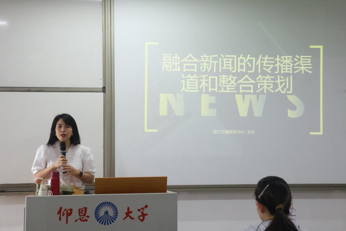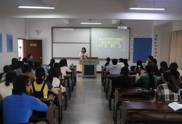 10月10日下午,晋江市融媒体中心总编室主任王玲为2021级新闻学专业同学上了一堂精彩的《融合新闻学》课。