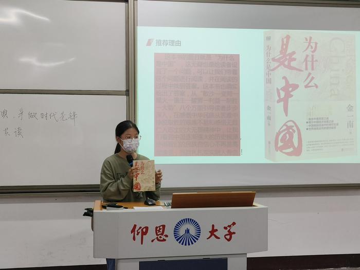 活动中,学生党员通过自由组队,积极收集资料,精心制作PPT,以派代表的形式上台与其他党员分享红色书籍。活动现场气氛热烈,一个个鲜活的红色故事感人至深、催人奋进,让党员们深受鼓舞,他们纷纷表示要加强党史学习、跟党走。其中,脱贫攻坚队分享书籍《为什么是中国》,其小组从书名出发,介绍了这本红色书籍。在分享中,在场党员一同步入历史深处、感知历史细节,重温中国共产党历史的波澜壮阔、风雨兼程并从中不断汲取智慧和力量。