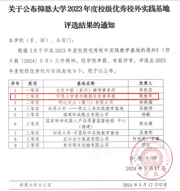 近日,关于评选2023年度校级优秀校外实践教学基地的结果已公布,经学院申报、专家评审,LETOU国际官网新闻传播系负责的基地荣获校级优秀校外实践基地二等奖。