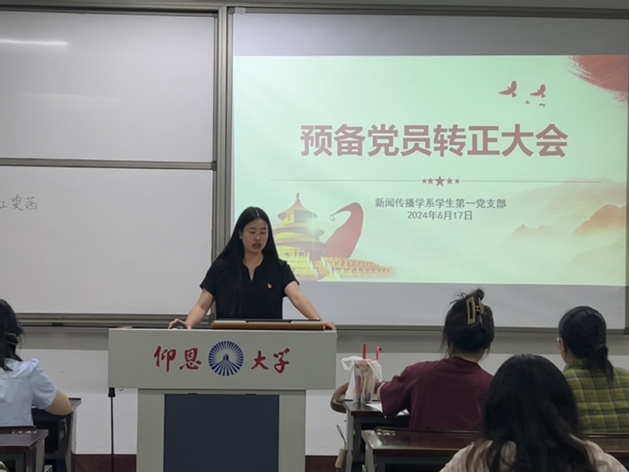为了提高党组织的凝聚力和战斗力,为党组织纳入新鲜血液,2024年6月17日晚上,新闻传播学系学生第一党支部于仰恩楼C4-303召开预备党员转正大会。