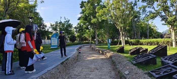 随后,实践队队员与曾主任一同前往洛江区河长制主题公园进行实地考察。在公园内,曾主任介绍了河长制的实际运作情况和取得的成效,并讲述了蔡襄的相关故事。