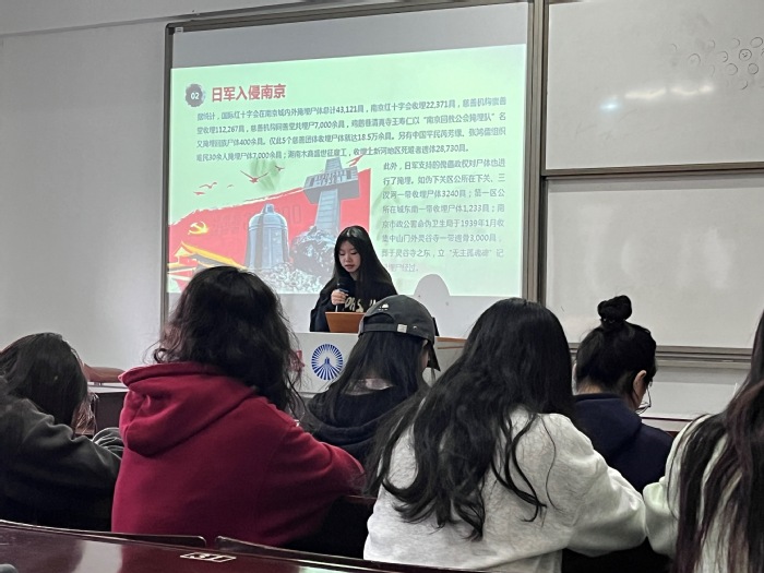 在支部党员讨论完毕后,主讲人李逸影依次讲解公祭日释义、详述日军入侵南京暴行、强调铭记历史的紧迫性,为党员们构建起清晰历史脉络。