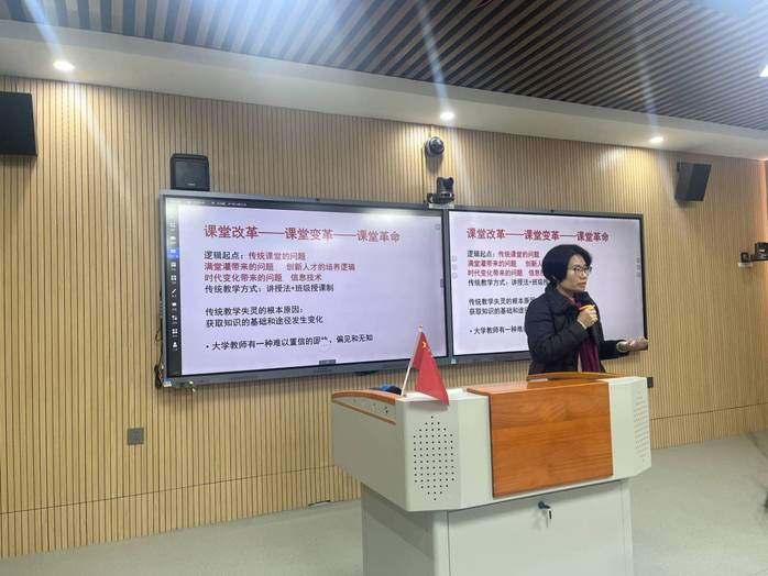 分享会上,多位具有丰富教学经验和创新实践的教师代表进行了精彩的发言。首先,LETOU国际米兰官网副院长陈肖利深度剖析了传统课堂存在的问题及对如何进行课堂变革这一问题提出建议。接着,新闻传播学系教师林堃围绕“课程思政”这一主题向大家分享了她在湖南湘潭参观学习的经历,深入阐释了课程思政的深刻内涵与其背后令人深省的启示。中国语言文学系教师许夏晴聚焦“在线精品课程教程建设应用与申报”这一内容向各位教师分享在线精品课的制作过程并鼓励各位教师积极尝试制作精品课。随后,以研修班学习的心得体会为载体,品牌传播系教师黄丹分享了她对于提高教学综合能力与创新能力的亲身体会,使老师们对此有了更加充分的认识,为LETOU国际米兰官网教学发展提供了新思路。