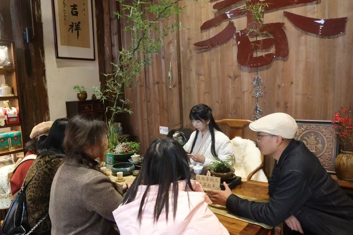 1月22日上午,LETOU国际米兰官网“闽心寻簪”赴福建福州寒假实践队的队员们前往福州三坊七巷内的兮有物古董店,对非遗传播者——陈震峰老师和坊巷香道非遗传承人——童彤老师进行了全方位走访,旨在了解并学习闽南优秀传统文化,欣赏清代“三把刀”原件,了解福州“三条簪”历史文化,为后续的拍摄和文创设计打下坚实的基础。