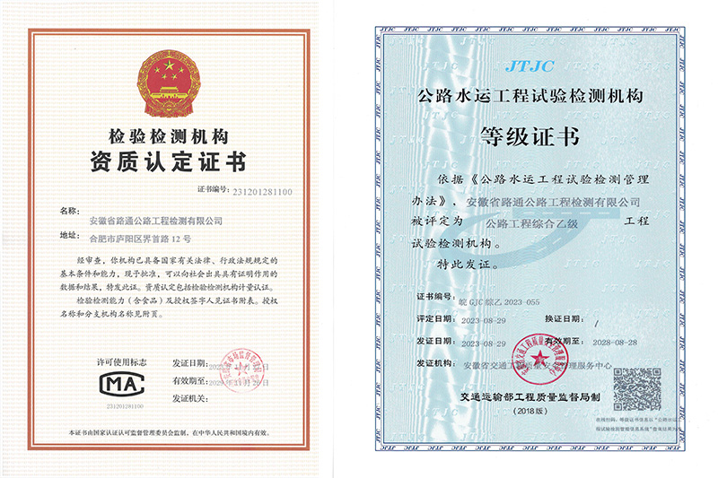 beat365平台官方网站路通公路工程检测有限beat365官网成立于2003年7月。现拥有公路工程综合乙级检测资质、排水管道检测及评估作业能力III级作业证书,并通过了检验检测机构资质认定。2021年12月16日,获批“高新技术企业”。各专业试验检测人员配备齐全,具备开展集料、钢材、土工、沥青及沥青混合料、水泥及水泥混凝土、砂浆、无机结合料、水、外加剂、砖以及路基路面、混凝土结构物、基坑地基与基桩、桥梁结构、交安设施、公路与桥梁技术状况和城镇排水管道检测等多项试验检测的能力。