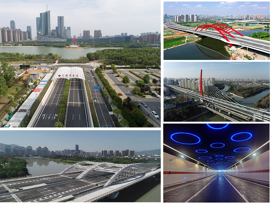 在紧接的包河大道高架、阜阳北路高架、高铁路高架滨湖新区环湖北路、锦绣大道、长江西路、方兴大道、怀宁路天鹅湖隧道、兴业大道、云谷路、包公大道、大连路、宿松路等大型市政工程建设热潮中,安徽交建“追求卓越、不断超越”,助推了省内各地市市政建设发展。
