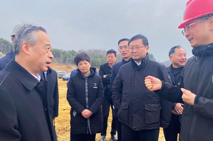 3月03日上午马鞍山市委书记张岳峰,市委副书记、市政府常务副市长吴劲一行莅临安徽交建承建的宁芜改扩建黄梅山保通线项目现场考察调研...
