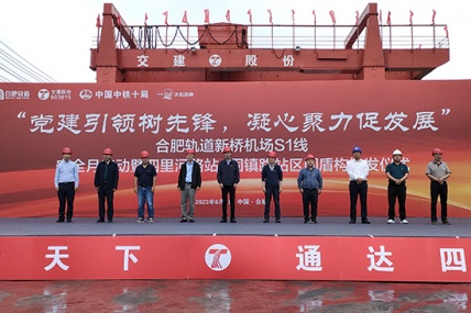 6月5日下午,合肥轨道新桥机场S1线安全生产月启动暨四里河路站~固镇路站区间盾构始发仪式活动在1标项目四里河路站施工现场举行
