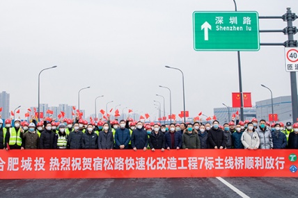 12月26日上午,由合肥市建投集团所属城投beat365官网建设管理,beat365平台官方网站承建的宿松路快速化改造工程7标段高架桥、地面道路同步放行通车。