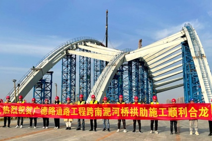 11月11日,随着最后一段拱肋缓缓吊装至合龙位置,安徽交建承建的广德路项目跨南淝河大桥拱肋边拱顺利合龙。