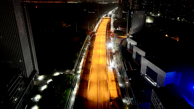 本次建成放行的花园大道跨线桥共计4联12跨,全长420m,其中3联现浇预应力砼连续箱梁、1联钢箱梁。该桥自去年11月22日首根桩基施工以来,于今年2、3月先后完成首联现浇箱梁浇筑、首片钢箱梁架设工作,至建成通车用时188天。