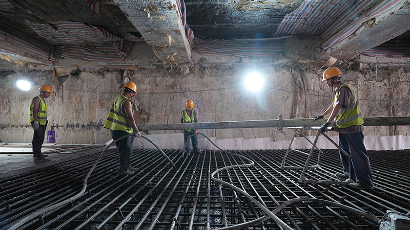 自2021年7月车站主体结构正式进入施工以来,历时357天完成主体结构封顶,在面对各工程交错施工带来的风险高、难度大、施工作业面狭小、地下管线众多、施工组织复杂、工期紧等因素影响,项目部不等不靠,见缝插针,积极与各管线产权单位协调,不断优化管线迁改和交通疏解方案。在前期技术准备、质量控制、安全措施和应急预案等方面做了全面部署,多次组织专家进行方案优化论证。