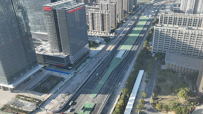 宿松路下穿地道全长1251.3m,其中北侧敞口段136.3m,暗埋段长975m;南侧敞口段长140m,共42个节段。与繁华大道十字相交段的双层下穿叠合段自3月14日开挖至今,历时283天,实现宿松路下穿地道结构贯通,比计划工期提前160天!