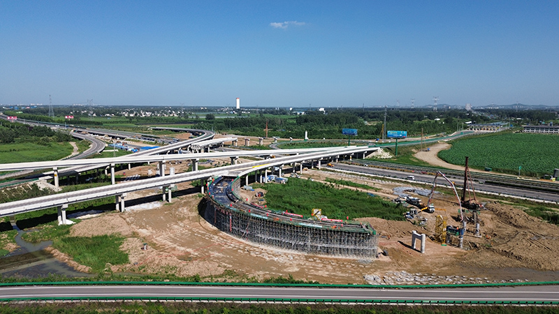 我标段承建的固蚌高速洪集枢纽二期工程,为落地式组合枢纽,向西距蚌埠北互通4.3公里,枢纽互通向南连接国道G329,设匝道收费站。项目建成后将实现与宁洛高速公路之间的交通转换及国道G329交通直接上下高速公路的功能,便捷了蚌埠市从洪集出入口上下宁洛高速,缓解了该市东北部交通压力。