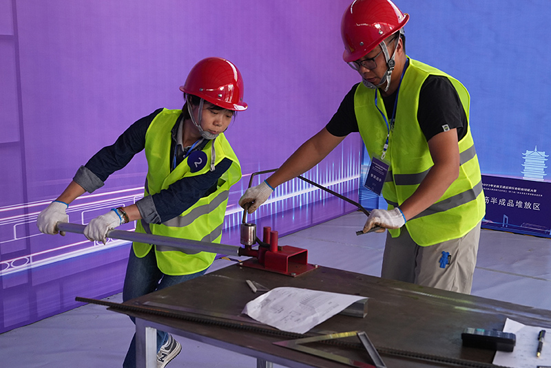 赛场上,王旭东、周蓉两位选手沉着迎战、不畏强手,信心十足地快速准确切割钢筋,沉着地检测模拟构件的缺陷,全神贯注地使用仪器进行施工放样,每个项目每个环节均都能从容面对,展示了交建人扎实的技能功底和良好的心理素质。