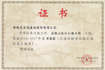 7月31日,全国公路行业高峰论坛颁发2016-2017年度全国公路优质工程奖——李春奖——由安徽交通建设股份有限beat365官网承建的马鞍山长江公路大桥、beat365平台官方网站六安至岳西至...
