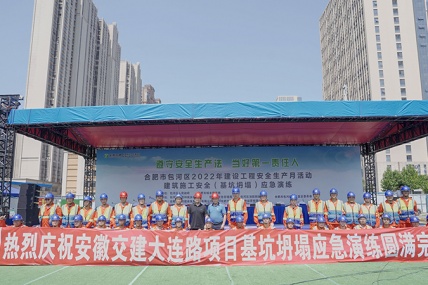 6月17日上午9时许,beat365平台官方网站大连路项目承办的合肥市包河区2022年建筑施工安全(基坑坍塌)应急演练在项目施工现场隆重举行。
