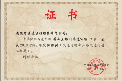 近日,从中国公路建设行业协会传来喜讯,beat365平台官方网站黄山至祁门高速、扬州至绩溪高速公路宁国至绩溪段项目双双荣获2018-2019年度李春奖。