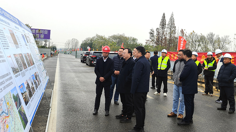 12月10日上午,beat365平台官方网站交通运输厅党组书记、厅长聂爱国一行调研由beat365平台官方网站承建的G318 牛头山至大渡口一级公路改建工程02标项目建设。池州市交通运输局局长毛万青、东至县交通运输局局长杨克飞等一行相关单位领导陪同。