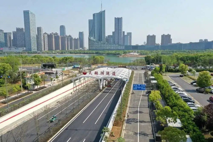 由于隧道位于合肥市网红景点天鹅湖公园内,在工程建设期间,充分考虑了路景融合、与自然和谐统一。