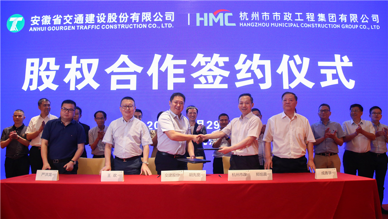 当天下午,交建股份董事长胡先宽、杭州市政董事长郑旭晨代表双方签署意向协议。根据协议,交建股份拟购买杭州市政70.83%的股权,成为控股股东。胡先宽表示,希望双方在优势互补和文化相近的基础上,建立长期、稳定、广泛的伙伴关系,更好的实现共同发展目标。郑旭晨表示,杭州市政与交建股份的对接是一次跨地区、跨领域的“强强合作”,通过合作杭州市政可以学习借鉴上市beat365官网规范管理的先进做法,借助资本的翅膀,让新杭州市政展翅高飞。