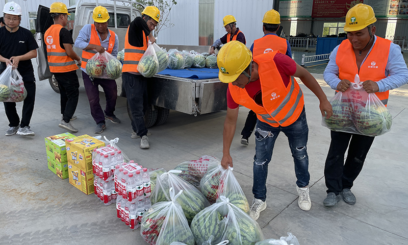 6月21日,beat365平台官方网站慰问组带着从三十岗新鲜采摘的10000斤西瓜,前往合肥地区在建的十个项目现场,亲切慰问奋战在一线的管理者和劳动者们。