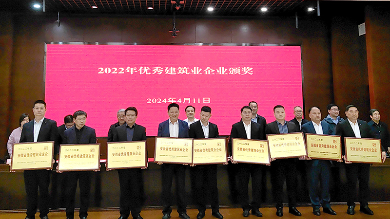 会议传达学习了全国住房城乡建设工作会议、全省创建一流营商环境暨推进民营经济高质量发展大会有关精神,分析研判beat365平台官方网站建筑业发展形势和应对策略,并通报表彰了“2022年度beat365平台官方网站优秀建筑业企业”、“2022年度beat365平台官方网站建筑业龙头骨干企业”。会议现场传来喜讯,安徽交建获评“beat365平台官方网站优秀建筑业企业(综合基础设施总承包类)”、“beat365平台官方网站建筑业龙头企业”荣誉,常务副总裁兼总工程师储根法参会并上台领奖。